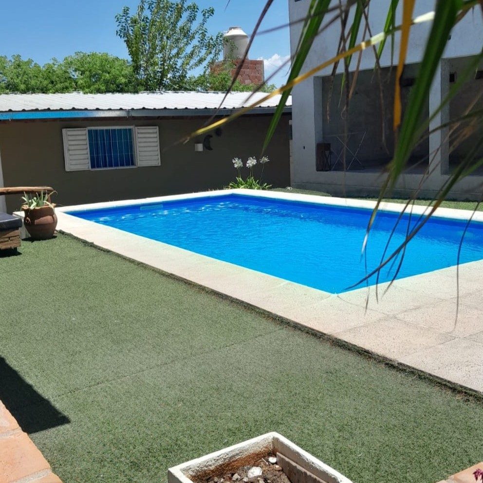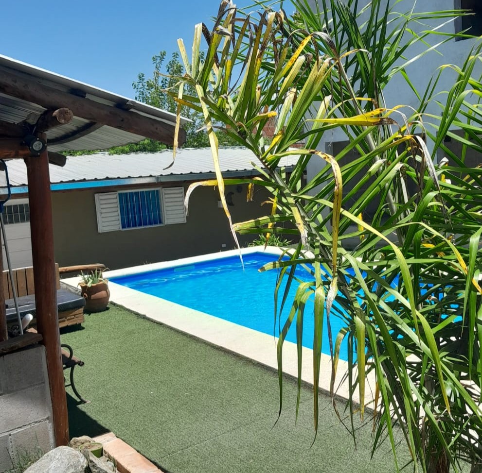 Contamos con 2 🏡 cabañas, pileta, quincho con asador, cocina completa, cochera techada, TV LED con directv, WiFi.